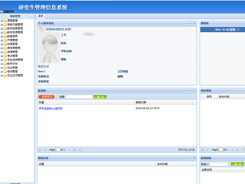 云南大学研究生管理信息系统为研究生院和学院提供研究生管理、教师和导师管理、培养方案管理、学位管理、教室和排课管理等信息化管理功能。
