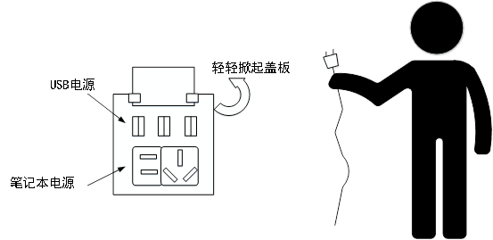 使用USB电源时,请轻轻掀起盖板,充电完成后,再轻轻盖起盖板。教师一定要提醒学生注意用电安全。
