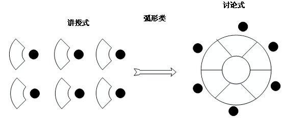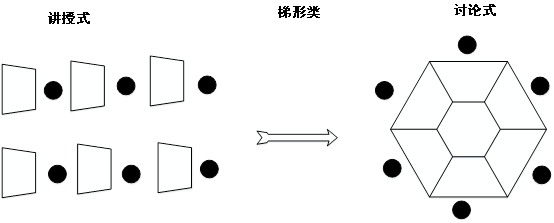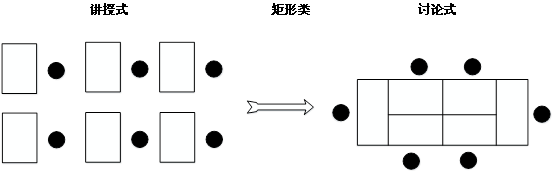 每间智慧教室的活动桌椅形式不尽相同,主要有如下三种形式,可以根据教学需要进行移动和组合: