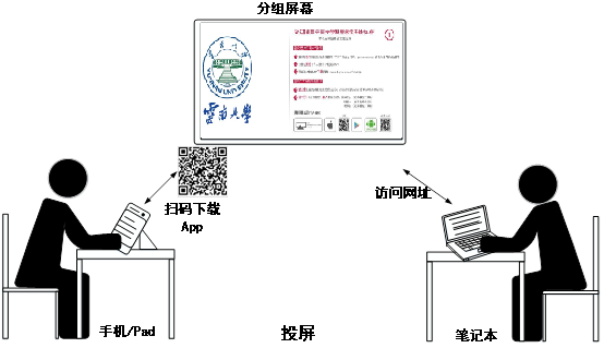 智慧教室课堂教学的大部分时间应该留给学生进行基于任务驱动的、项目驱动的、分组讨论的探究式学习,在此过程中,教师主要起引导和指导作用。学生要通过自带的终端全程接入无线校园网进行自主探究和团队研讨,并可将自己终端的屏幕投屏到分组讨论屏上进行讨论。