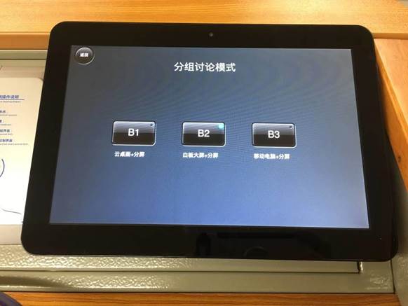 “B3”是教师自带的笔记本电脑投到白板大屏和讲桌上的显示器,分组屏上显示投屏说明。