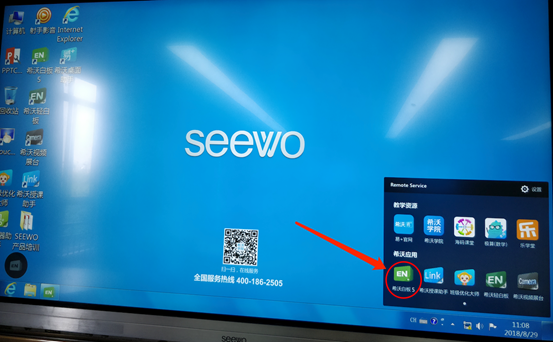 1.从大屏底部向上滑动,点击“PC”切换到大屏内置电脑,教师可以随时在讲桌云桌面电脑和电子白板间切换: